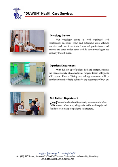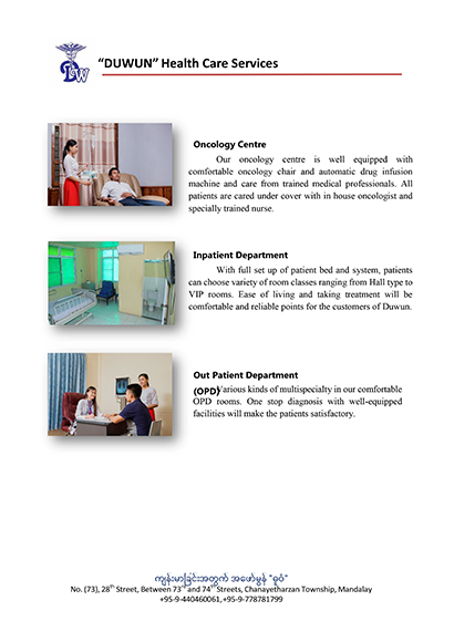 *** ျမန္မာျပည္ရွိ မိဘျပည္သူမ်ားအား ကၽြန္ေတာ္တို႔၏ မိသားစု၀င္မ်ားကဲ့သို႔ ခံယူကာ အရည္အေသြးျပည့္၀ေသာ ႏိုင္ငံတကာ စံႏႈန္းႏွင့္အညီ ၀န္ေဆာင္မႈေကာင္းမ်ားျဖင့္ က်န္းမာေရးေစာင့္ေရွာက္မႈမ်ား ပိုမိုလက္လွမ္းမီလာေစရန္ ***
